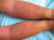 湿疹患处有成片的红斑、丘疹、皮损、渗液、糜烂等,依赖激素治疗还会造成患处颜色更暗或是色素沉着,这些严重的症状严重影响患者的外观。